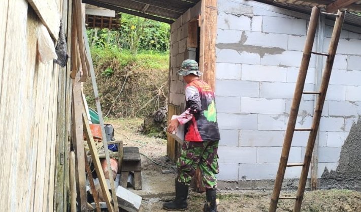 Dengan cekatan, ia memanggul herbel demi herbel. Langkahnya mantap, keringatnya jatuh tanpa keluh. Di hadapannya, berdiri rumah sederhana milik Bapak Narsum—rumah yang sebentar lagi akan memiliki MCK yang layak, tempat kebersihan dan martabat keluarga dijaga.
