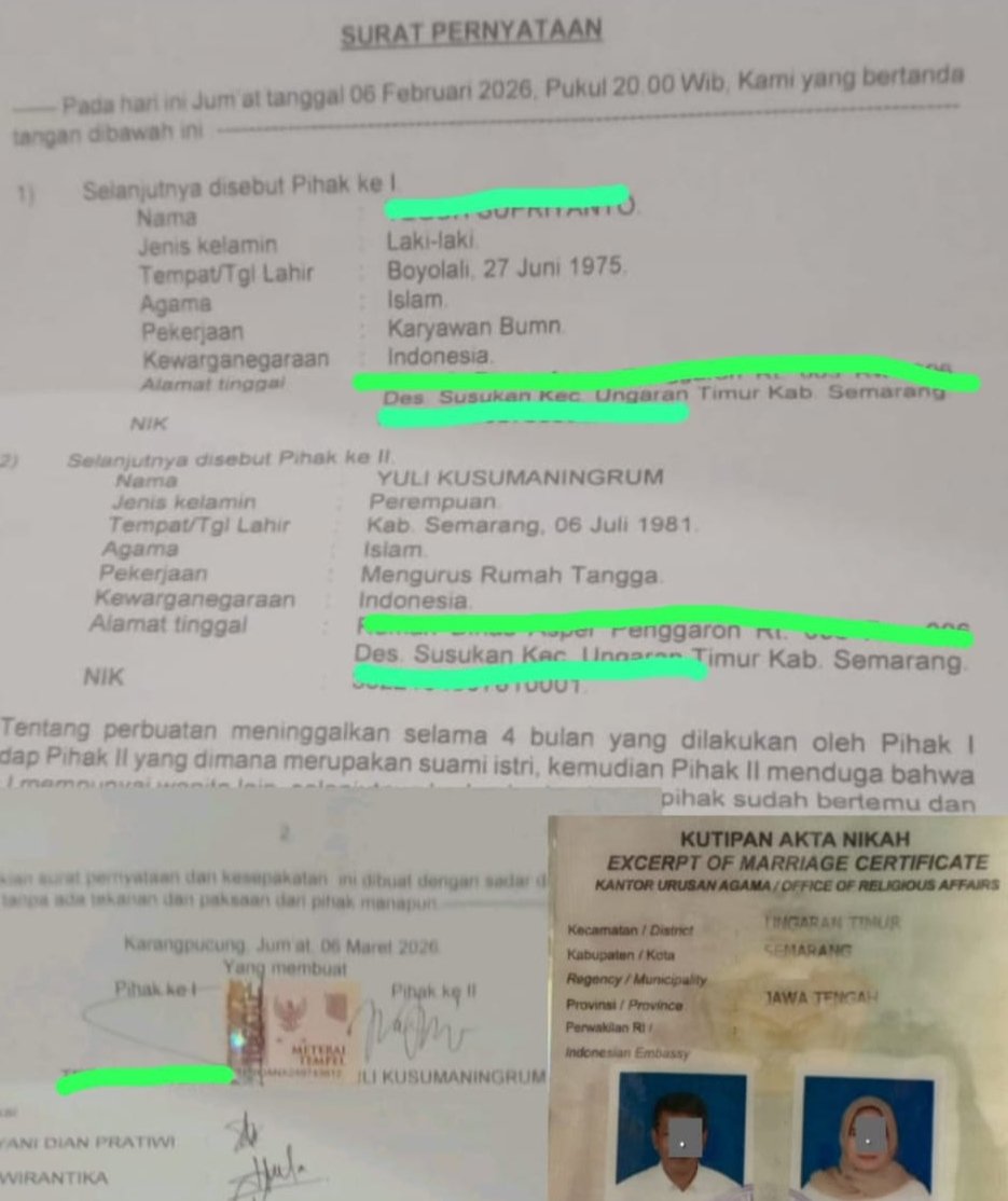 SEMARANG-Kasus dugaan perselingkuhan kembali mencuat di Kabupaten Semarang. Seorang istri, Yuli Kusumaningrum, dikabarkan akan menempuh jalur hukum setelah suaminya, Teguh Supriyanto, diduga kembali mengulangi perbuatannya meski sebelumnya telah membuat surat pernyataan di hadapan polisi.