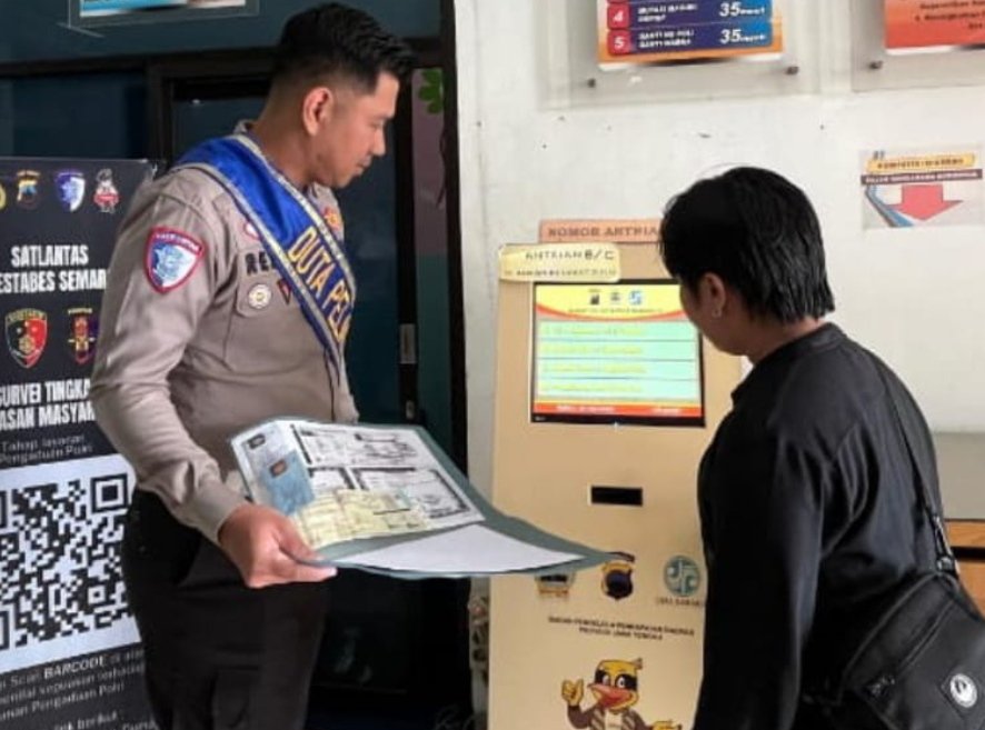 SEMARANG – Duta Pelayanan BPKB Polrestabes Semarang terus berupaya meningkatkan kualitas pelayanan publik dengan memberikan penjelasan secara langsung kepada masyarakat terkait mekanisme mutasi masuk kendaraan bermotor, khususnya bagi warga yang masih belum memahami prosedur dan persyaratan yang harus dipenuhi.