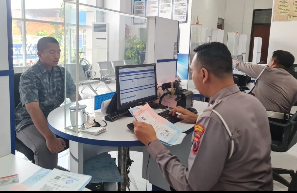 “Petugas registrasi memastikan seluruh data pemohon sesuai dengan dokumen yang dibawa. Proses input dan pencocokan data dilakukan secara teliti agar pelayanan berjalan tertib, cepat, dan akurat,” ujar AKP Widiastuti.