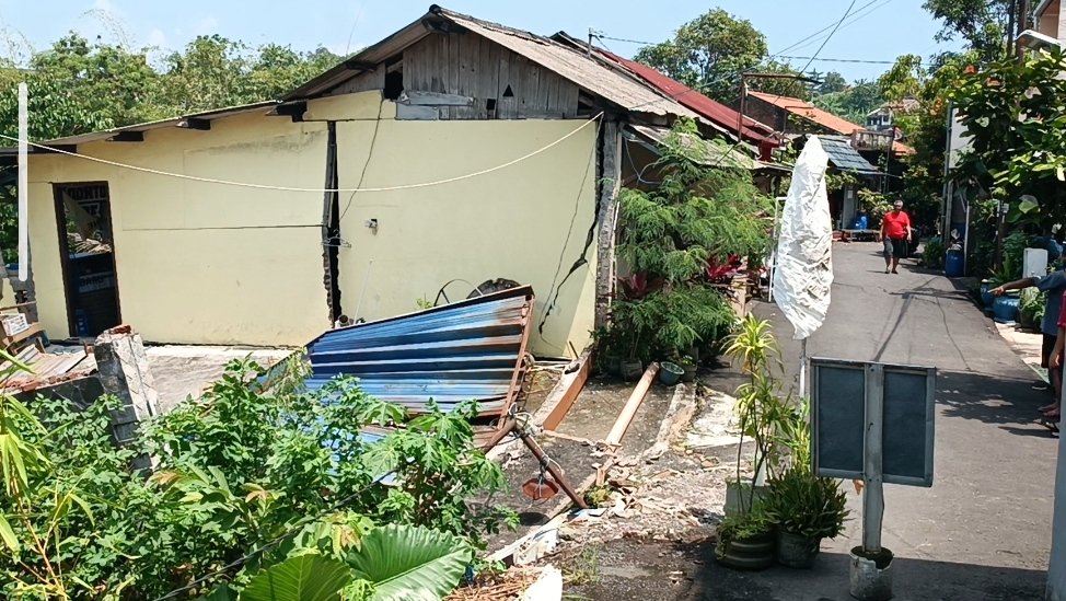 Setelah sebelumnya satu rumah roboh, kini satu rumah lagi ambruk akibat longsoran yang terus meluas. Bahkan, tiga rumah lainnya kini berada dalam kondisi terancam.